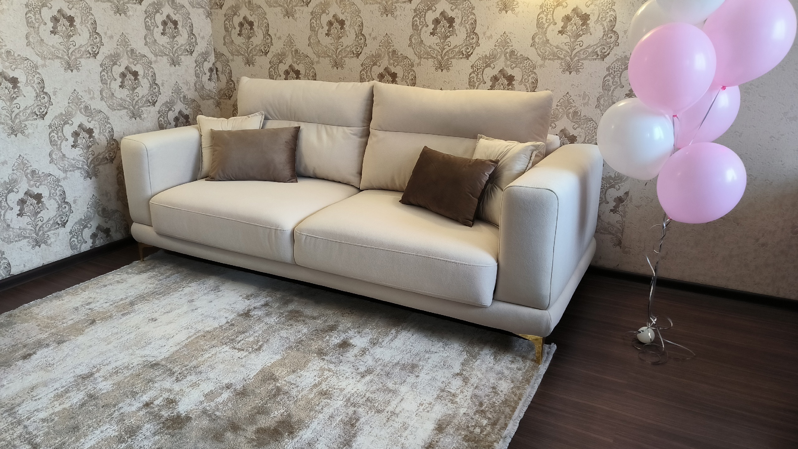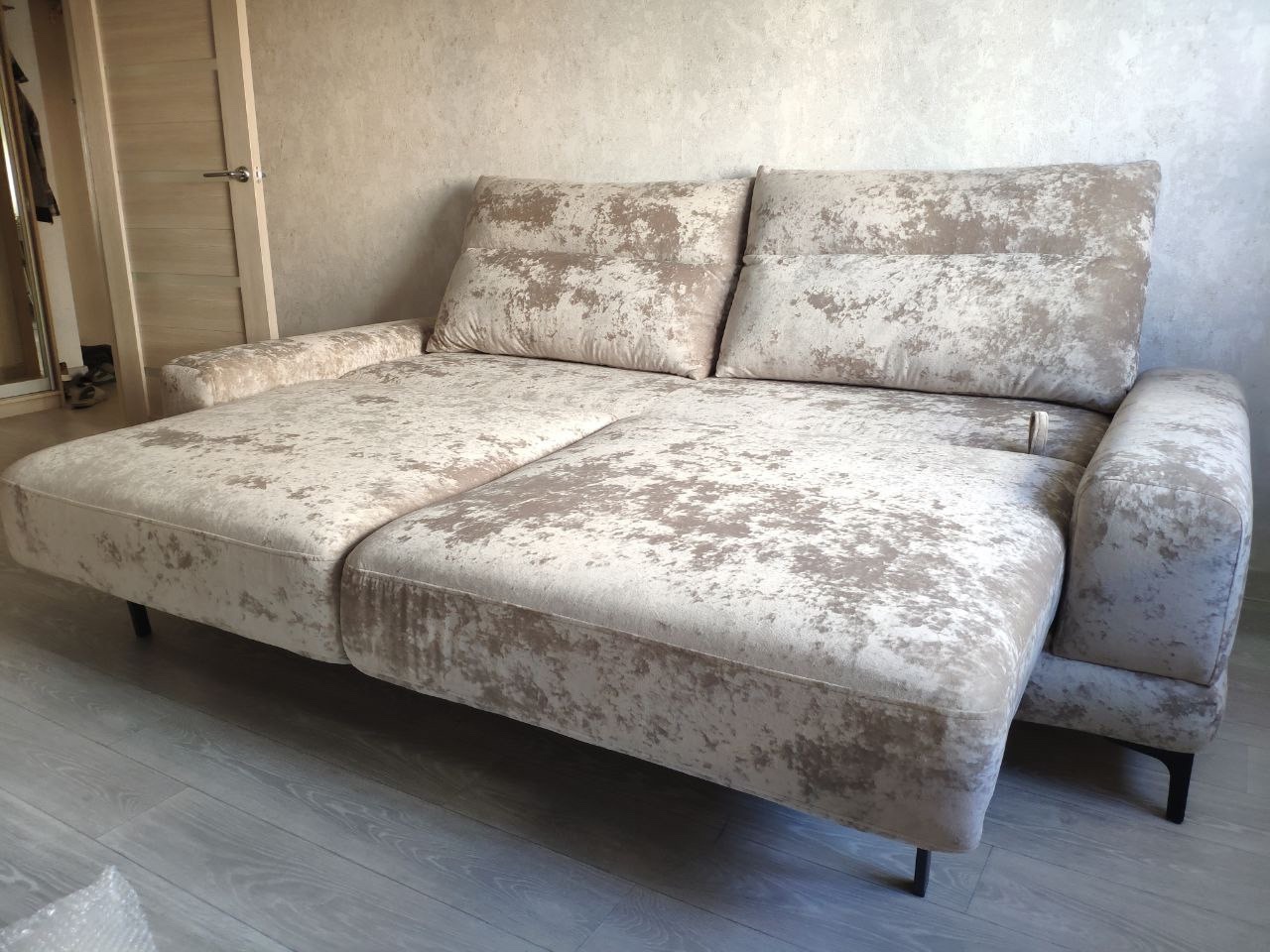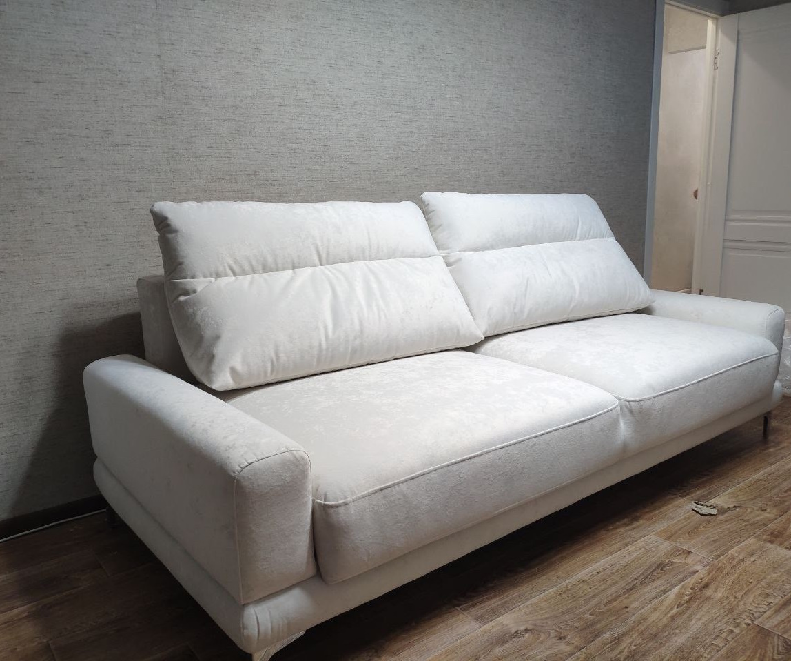 Уютный и стильный диван для квартиры и загородного дома. Высокие металлические опоры дополняют современный образ данной модели мягкой мебели, а также облегчают процесс уборки под диваном. Механизм трансформации «Тик-так» позволяет легко разложить диван в комфортное спальное место. В наполнении дивана – высокоэластичная пена «Elax», она мгновенно восстанавливает форму после нагрузки и сохраняет упругость в течение длительного времени.