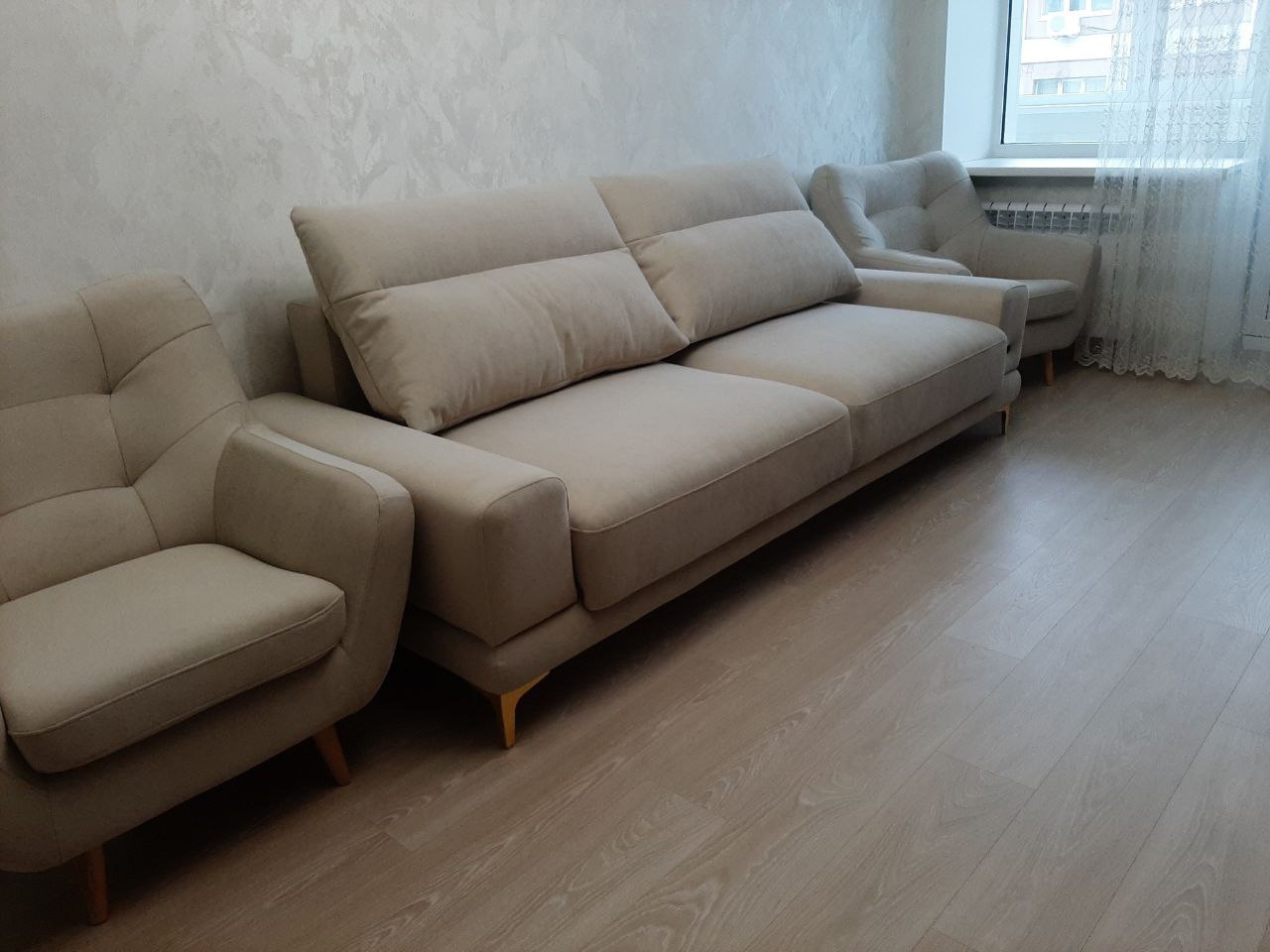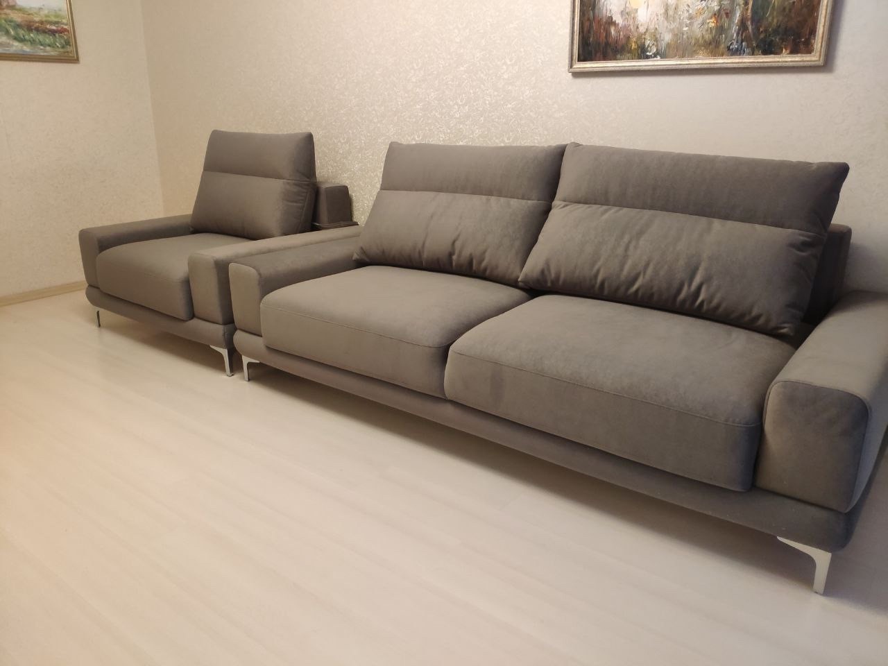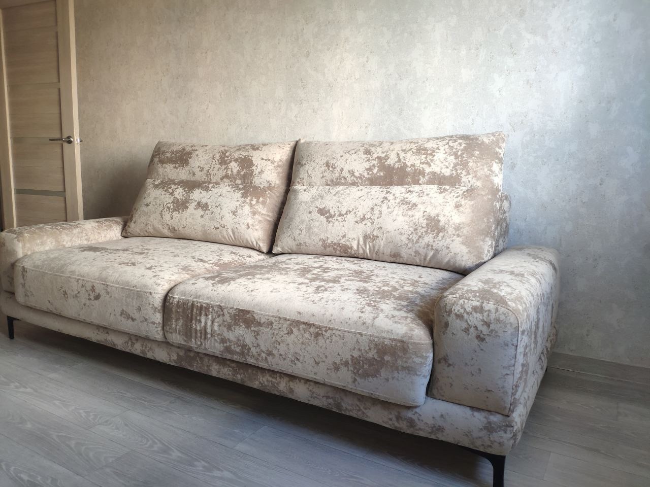 Уютный и стильный диван для квартиры и загородного дома. Высокие металлические опоры дополняют современный образ данной модели мягкой мебели, а также облегчают процесс уборки под диваном. Механизм трансформации «Тик-так» позволяет легко разложить диван в комфортное спальное место. В наполнении дивана – высокоэластичная пена «Elax», она мгновенно восстанавливает форму после нагрузки и сохраняет упругость в течение длительного времени.