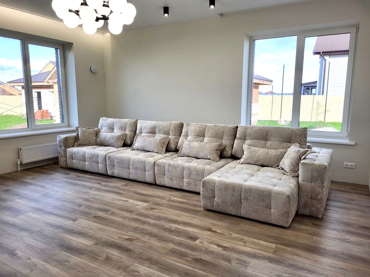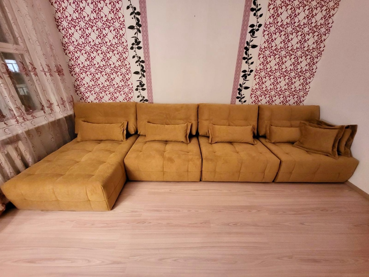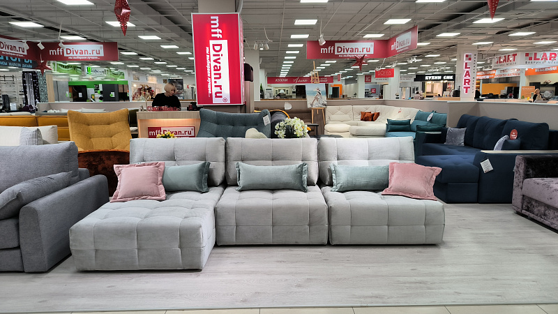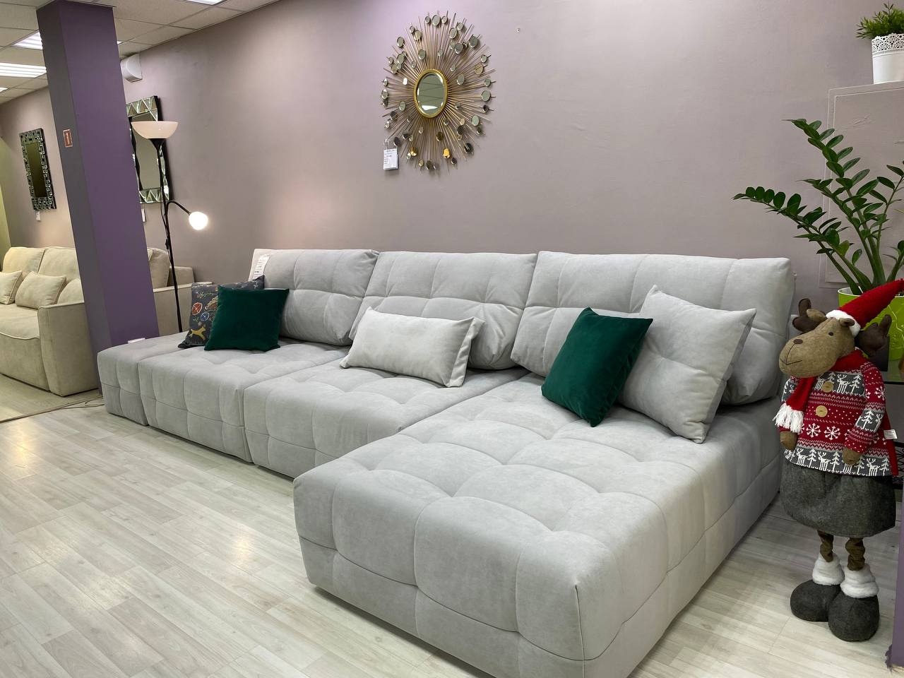 Дизайн дивана придётся по вкусу ценителям всего оригинального: «квадратная» утяжка модулей по всему периметру – диван подходит для зонирования помещения, геометрию данной модели также дополняют стильные подушки для спины.