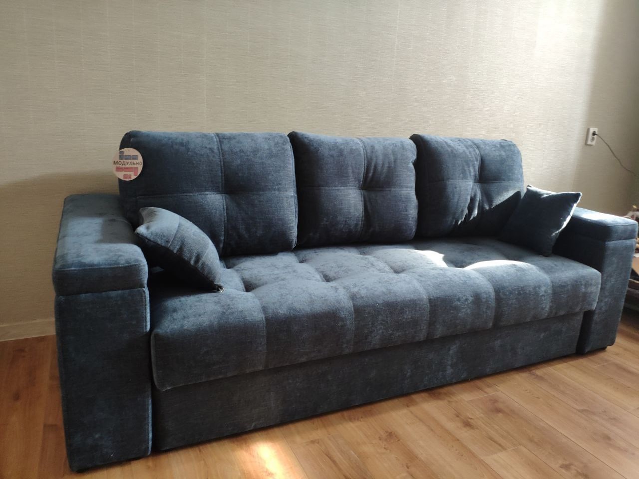 Диваны этой модели имеют самое просторное спальное место. Также вы сможете выбрать, какое наполнение матраса будет у вашего дивана: независимый пружинный блок или высокоэластичная и упругая пена. В основе матраса находятся прочные ортопедические латы. Диван, оттоманка, дополнительный кресельный модуль, а также подлокотники оснащены бельевым коробом.