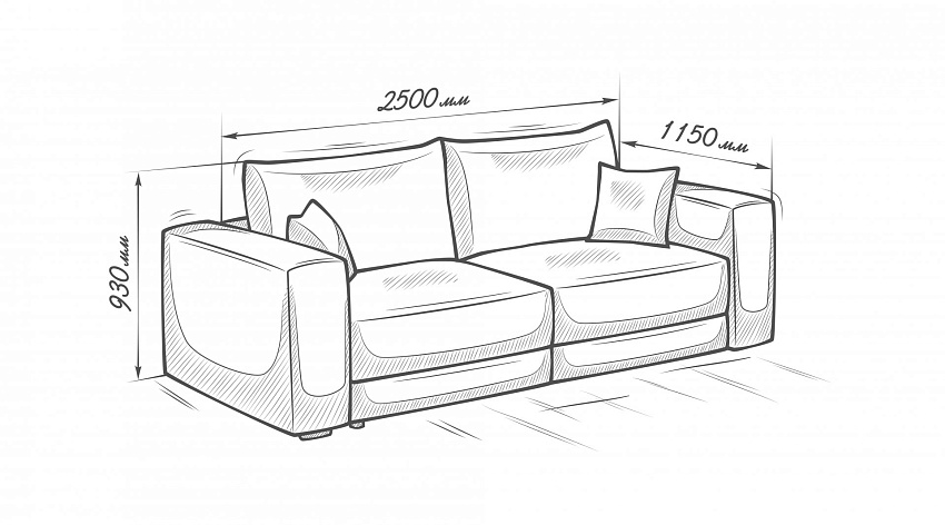 Диван Бруклин прямой с дополнительным модулем и широким подлокотником