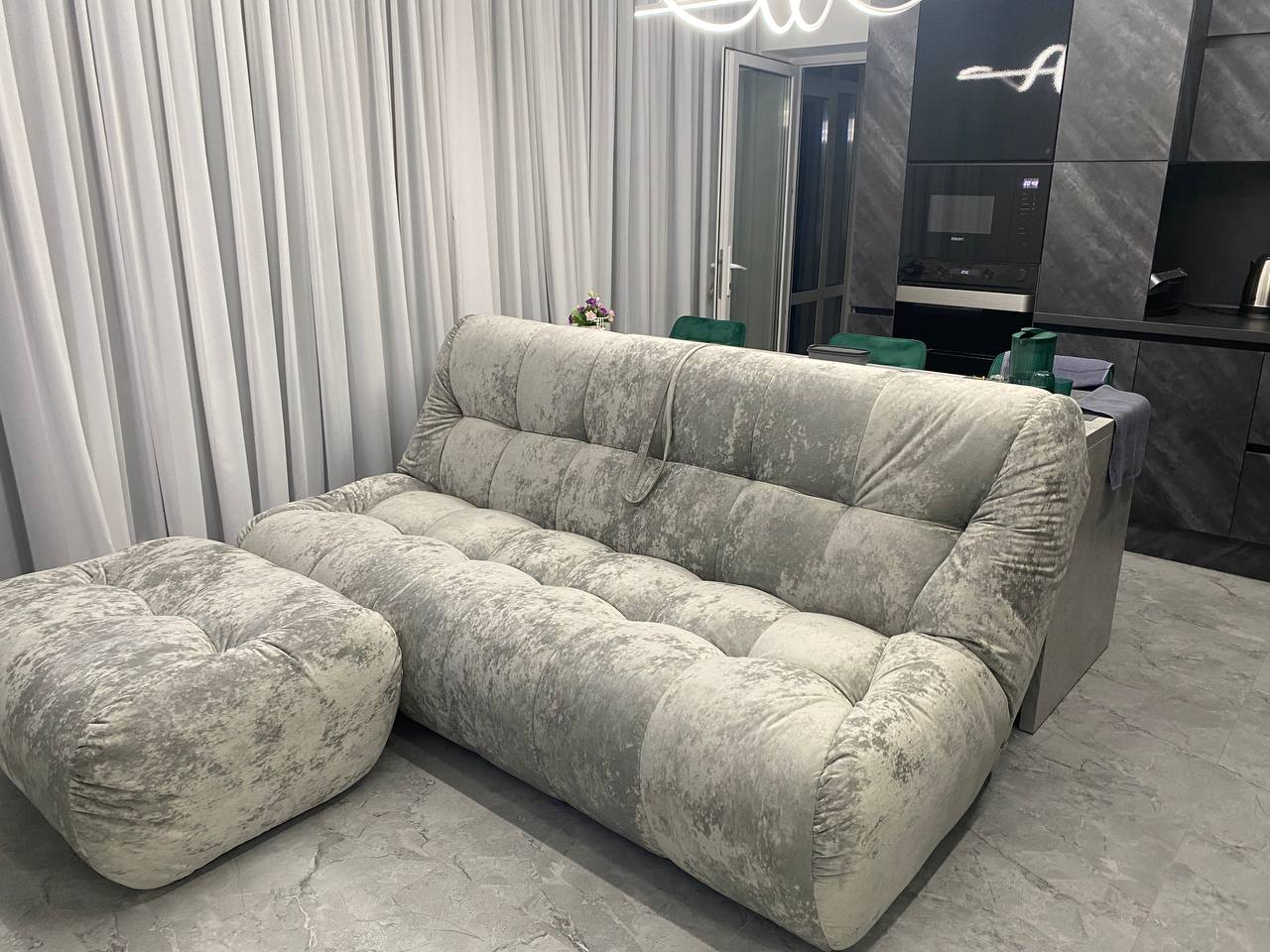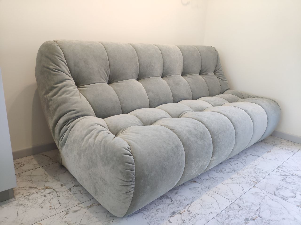 Дизайн дивана придётся по вкусу ценителям всего оригинального: «квадратная» утяжка модулей по всему периметру – диван подходит для зонирования помещения, геометрию данной модели также дополняют стильные подушки для спины.