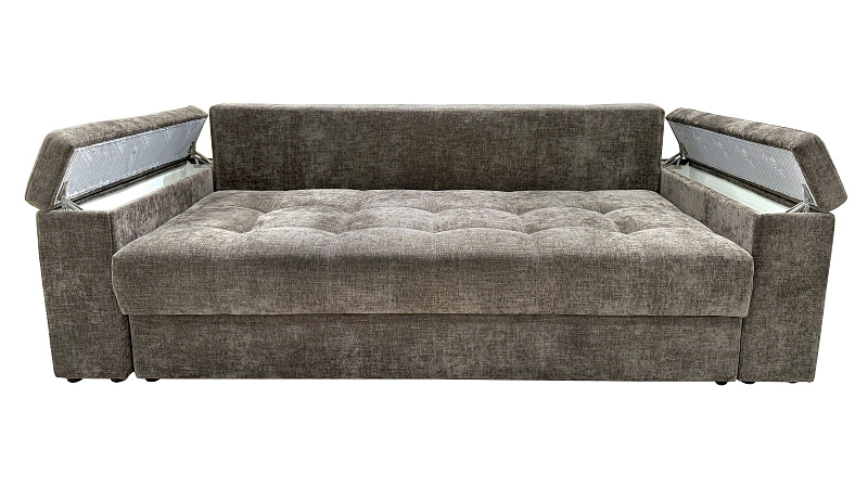 Диван, оттоманка, дополнительный кресельный модуль, а также подлокотники оснащены бельевым коробом.