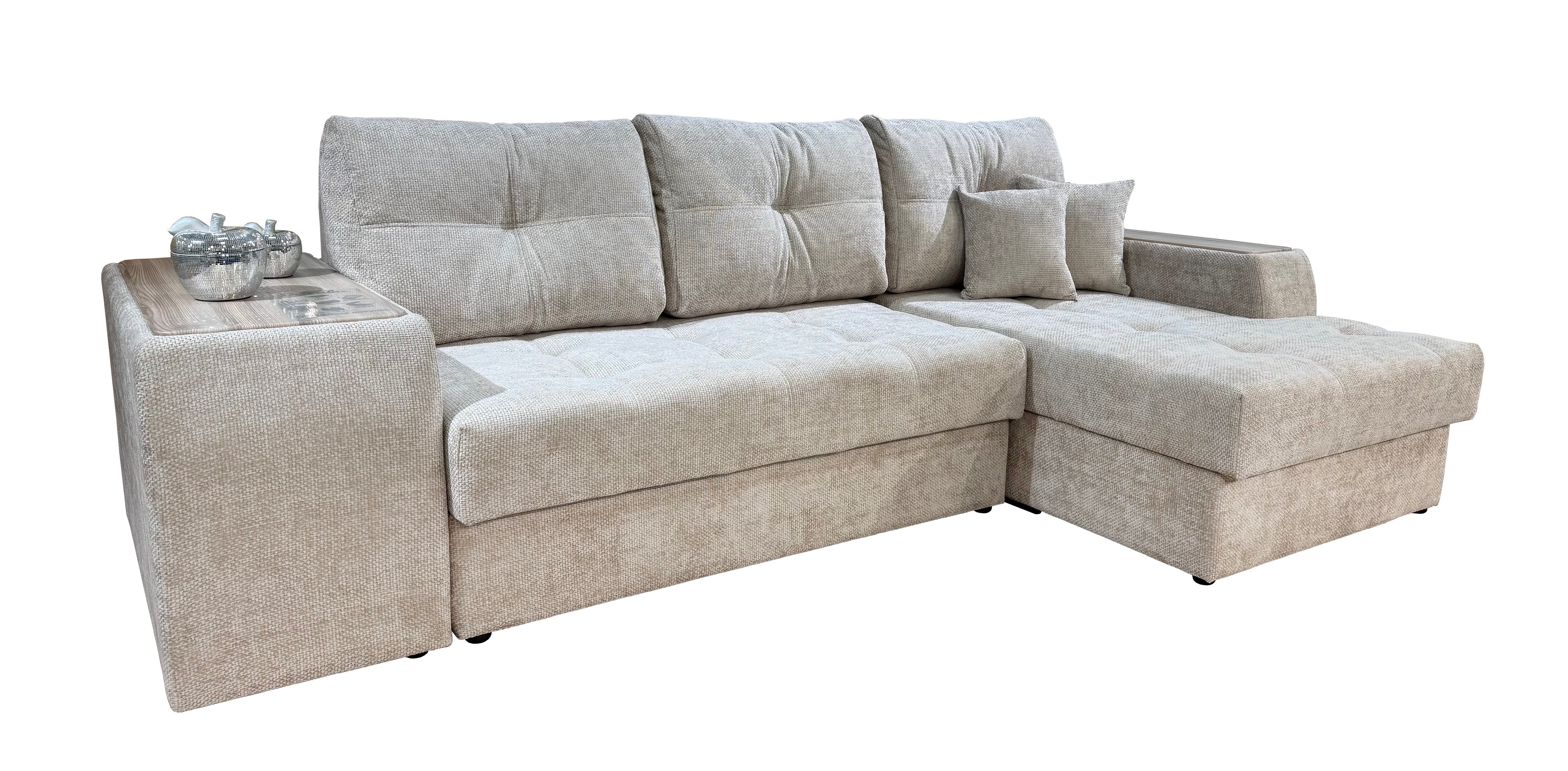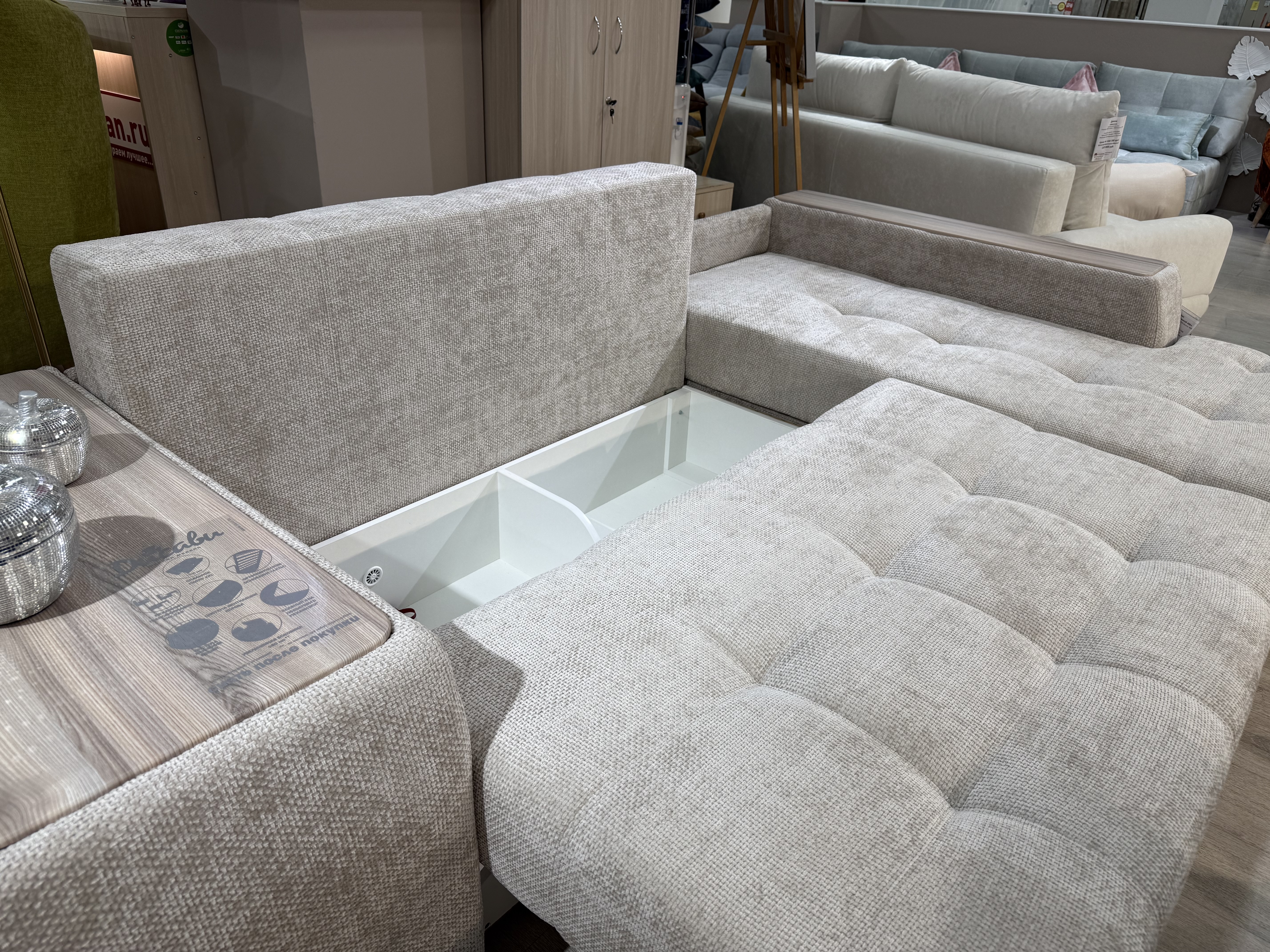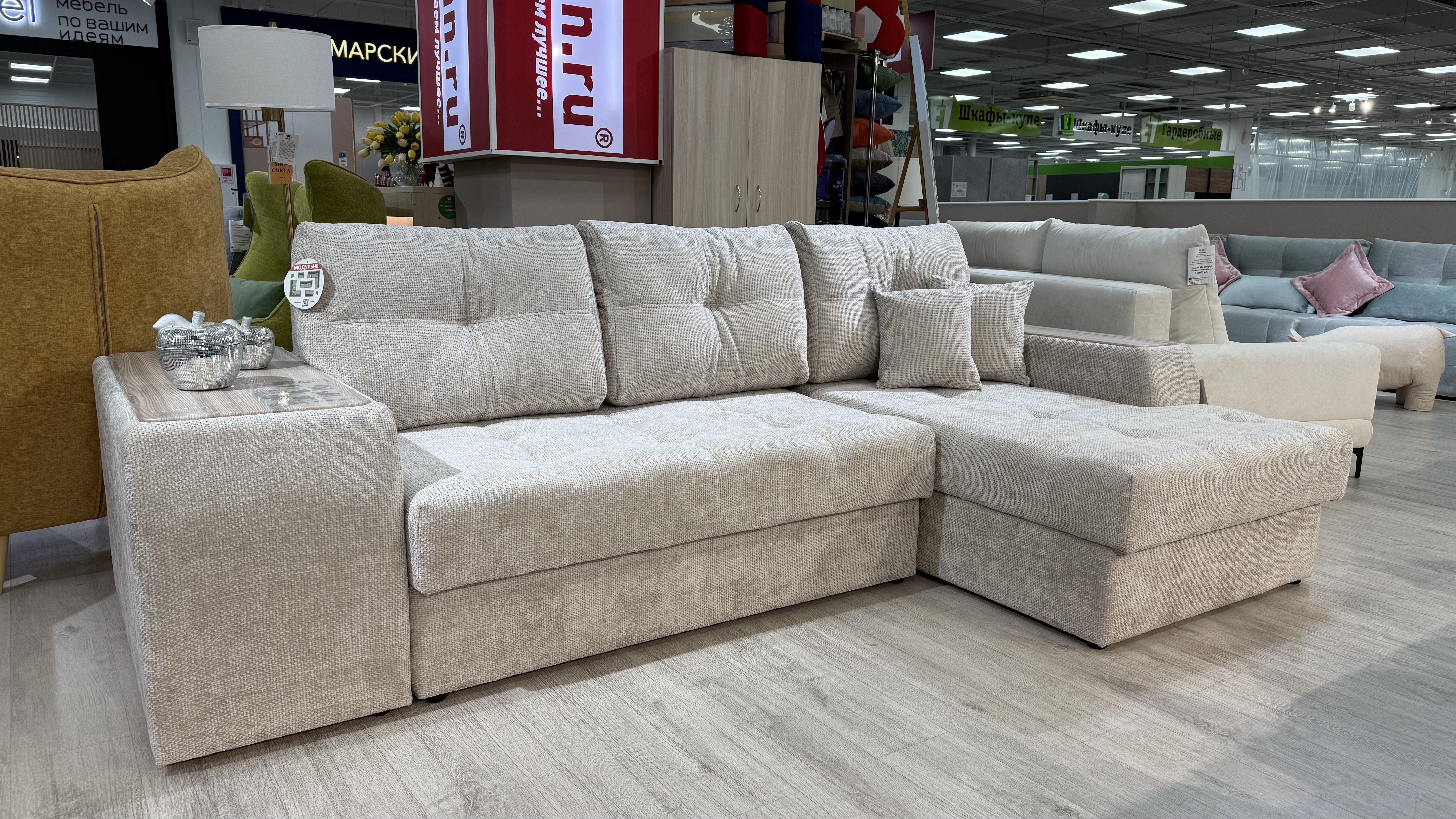 Множество опций в каждой детали - это про диван "Остин". Дополнительный модуль и оттоманку можно расположить с любой стороны дивана.