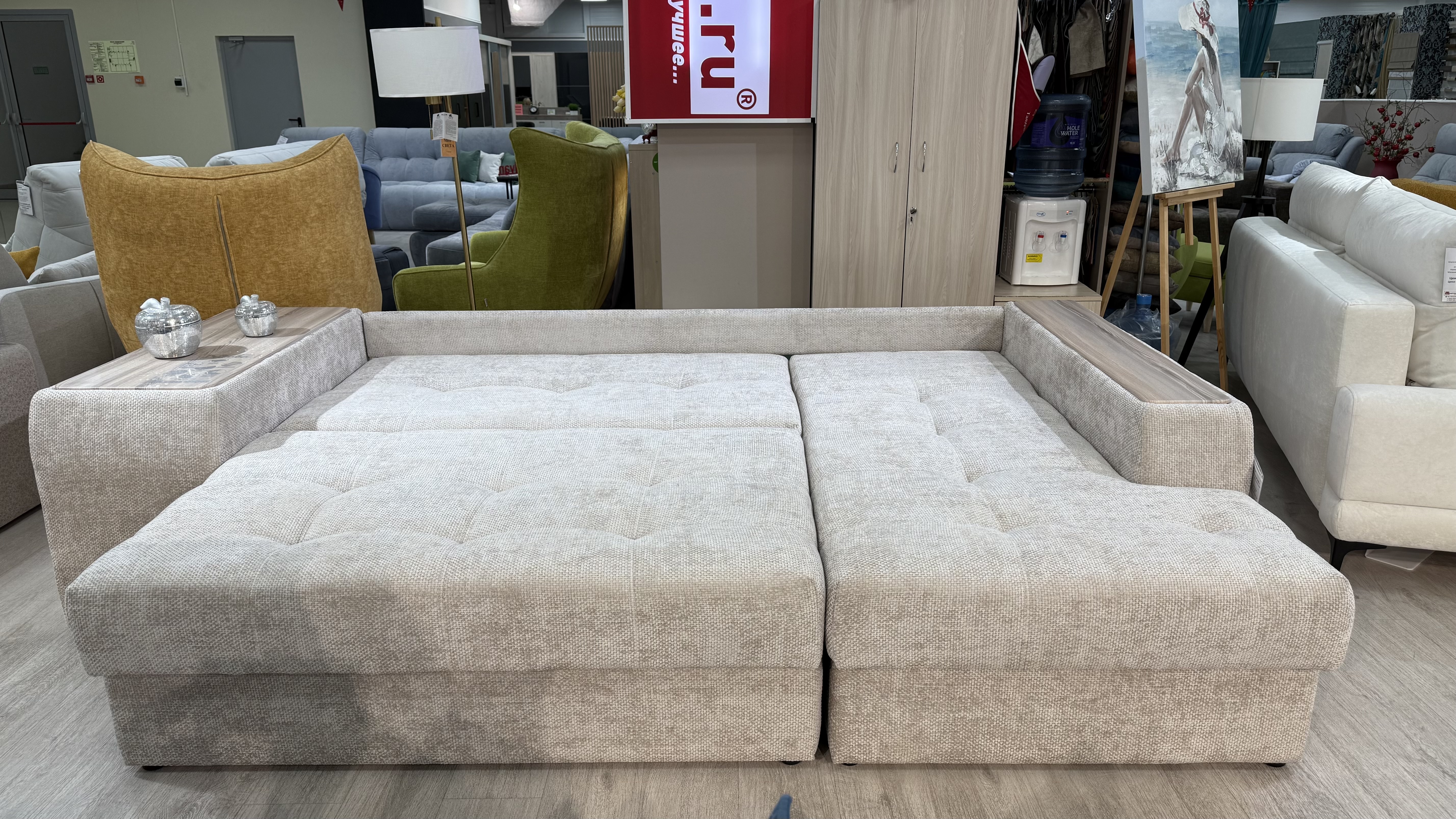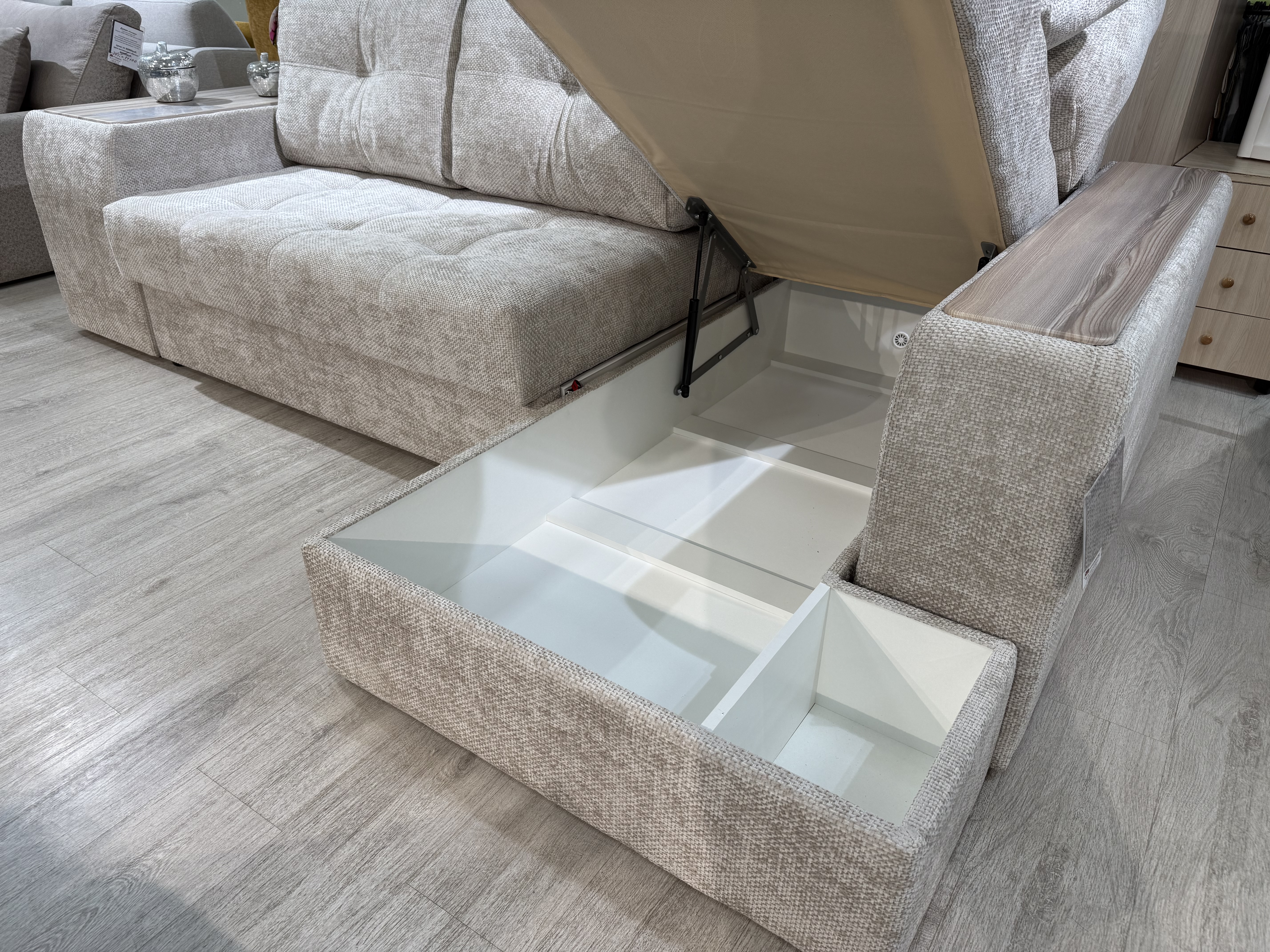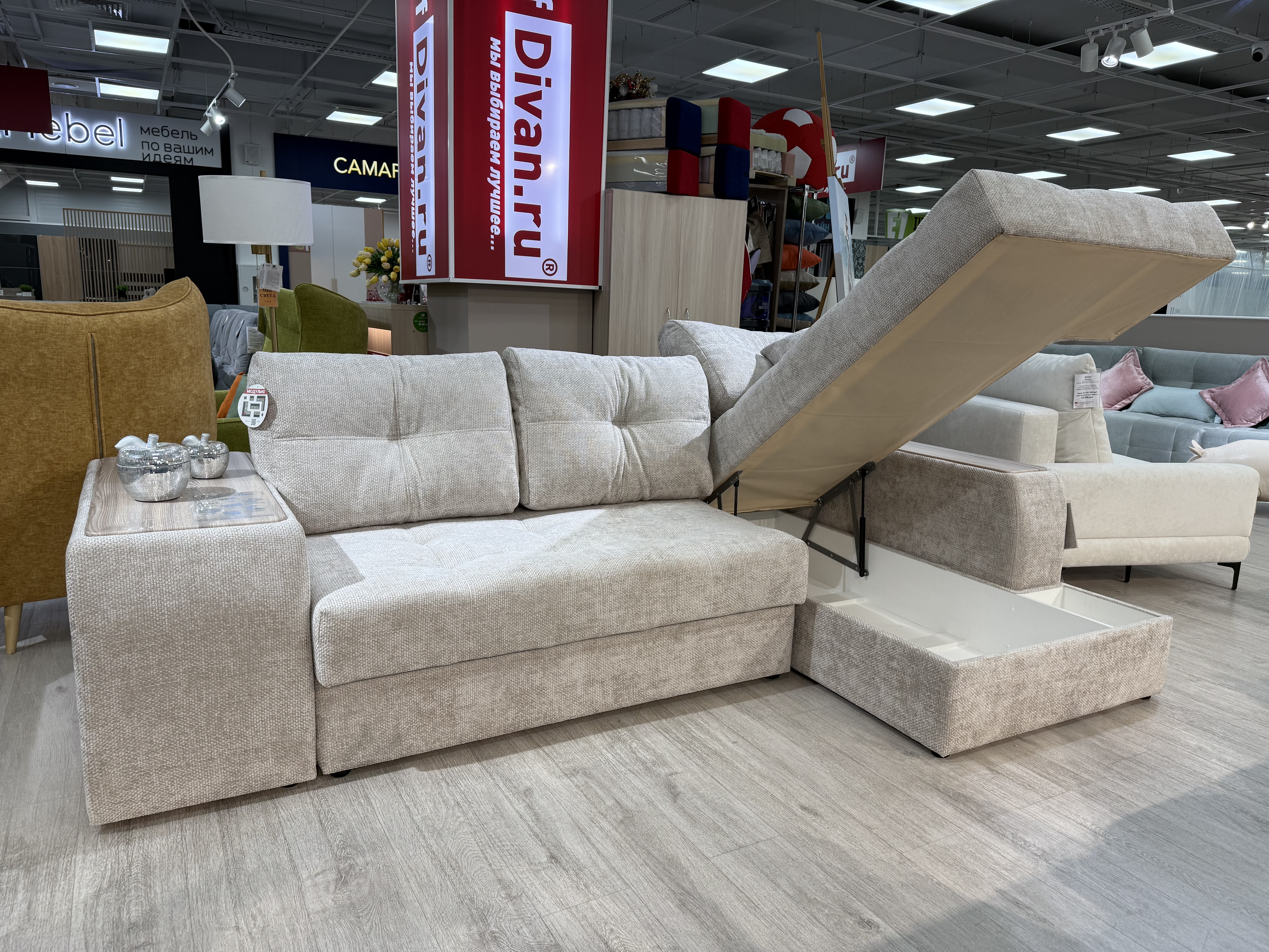 Множество опций в каждой детали - это про диван "Остин". Дополнительный модуль и оттоманку можно расположить с любой стороны дивана.