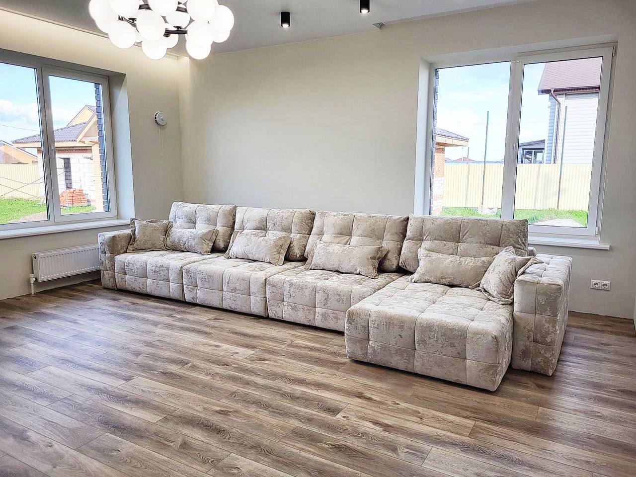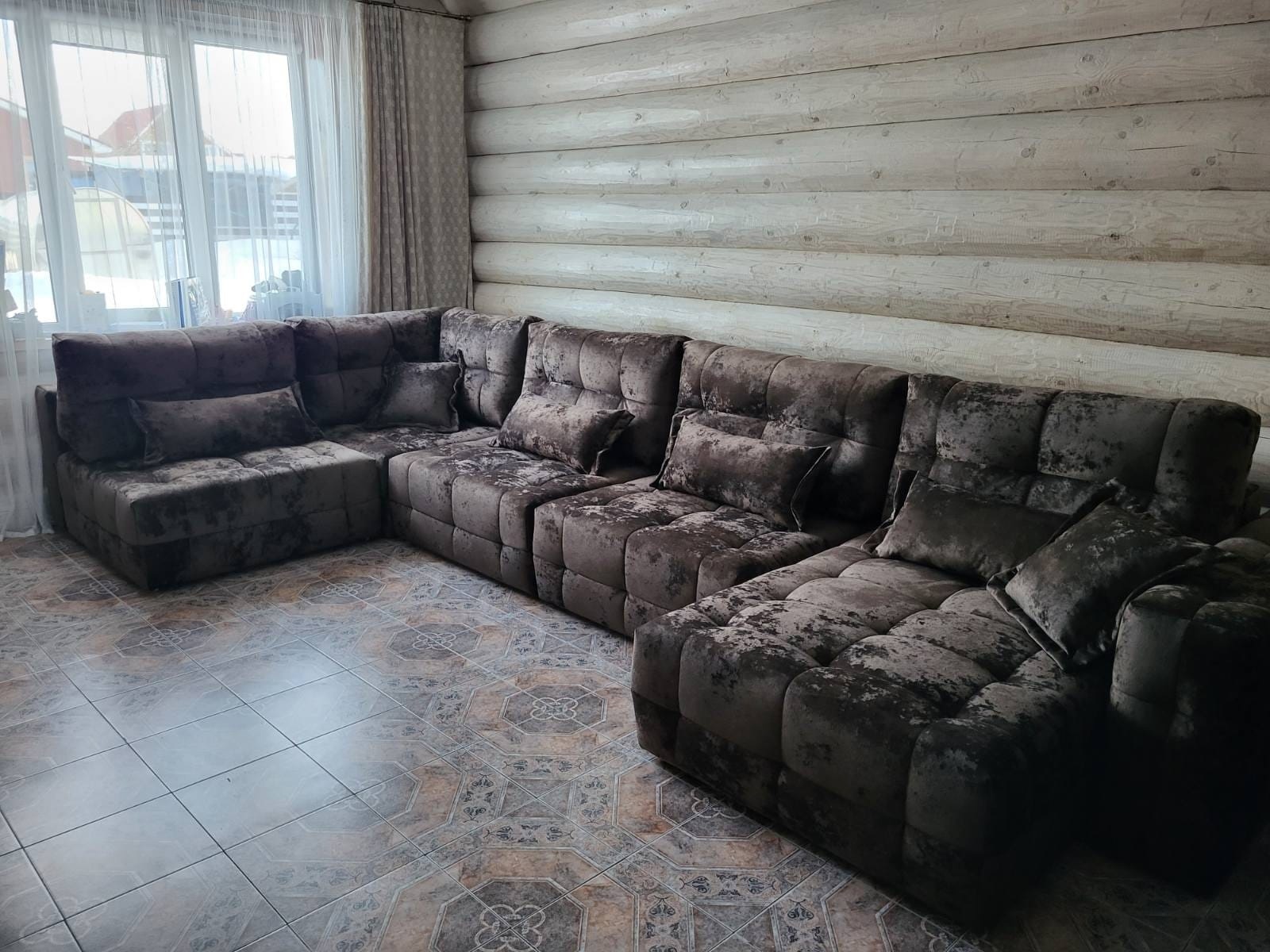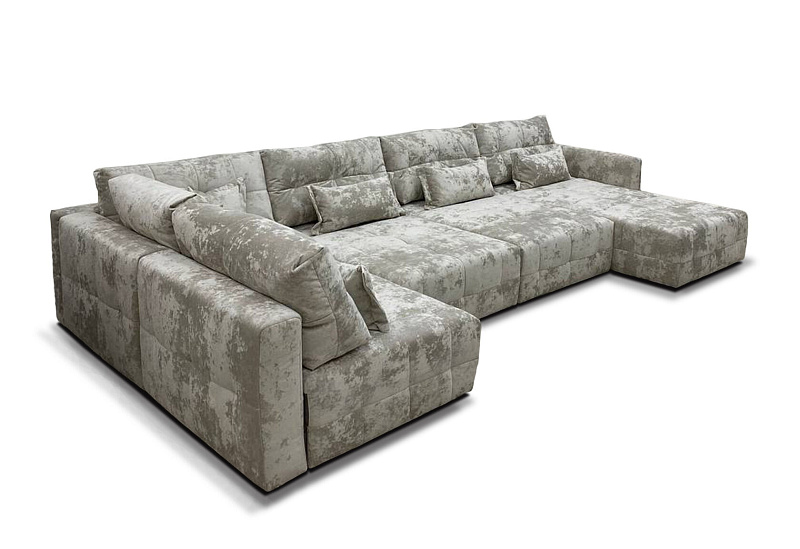 Дизайн дивана придётся по вкусу ценителям всего оригинального: «квадратная» утяжка модулей по всему периметру – диван подходит для зонирования помещения, геометрию данной модели также дополняют стильные подушки для спины.