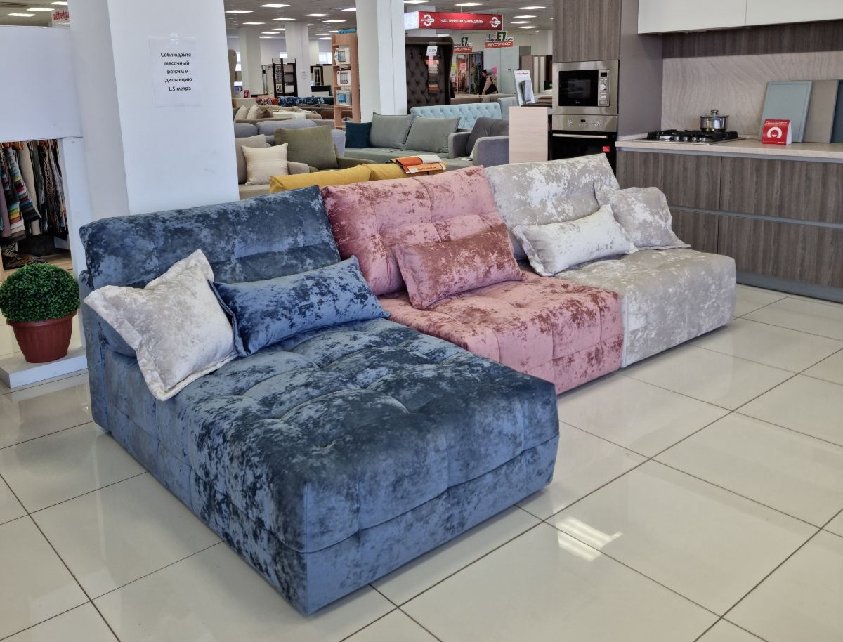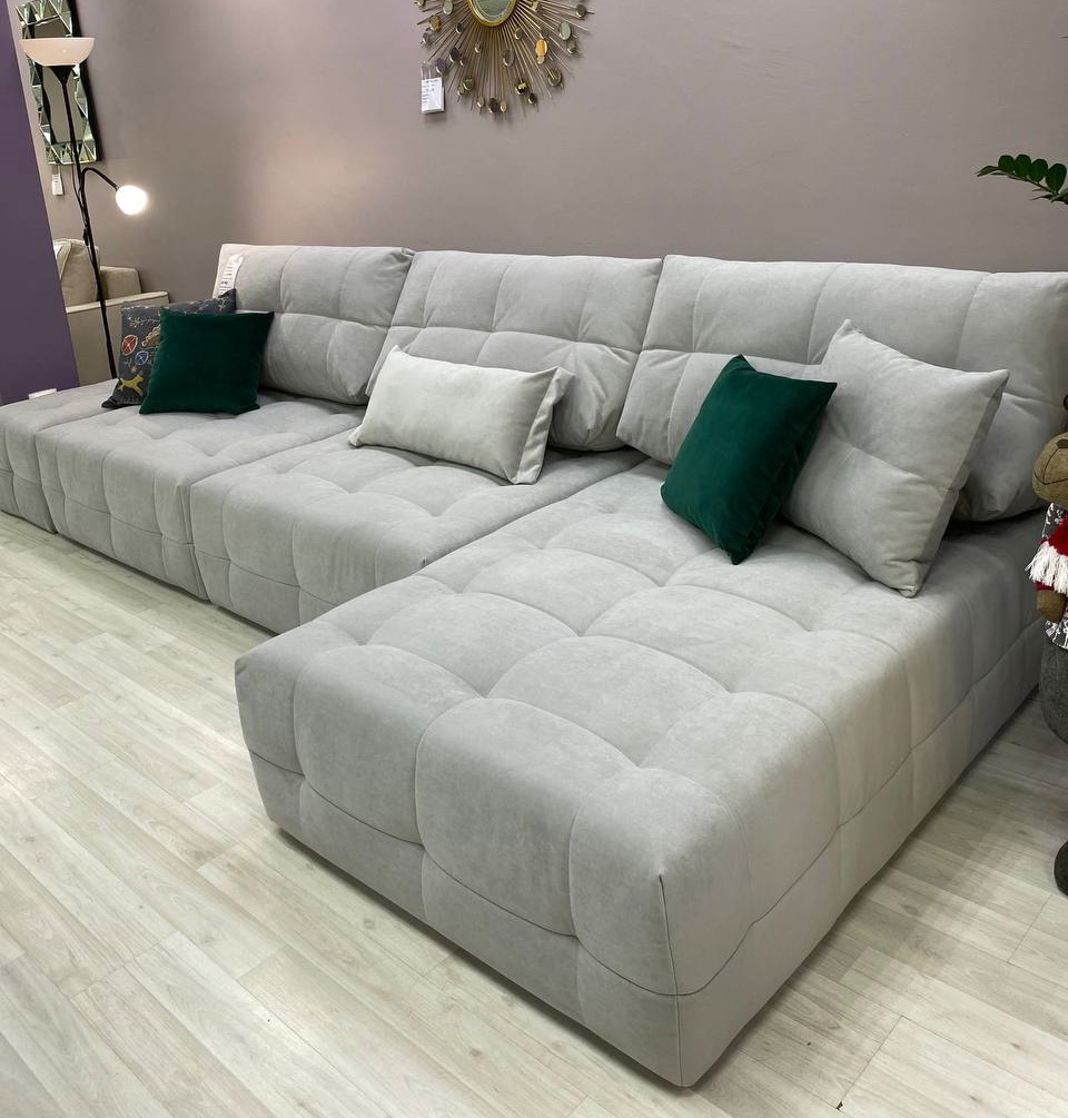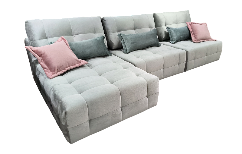 Дизайн дивана придётся по вкусу ценителям всего оригинального: «квадратная» утяжка модулей по всему периметру – диван подходит для зонирования помещения, геометрию данной модели также дополняют стильные подушки для спины.